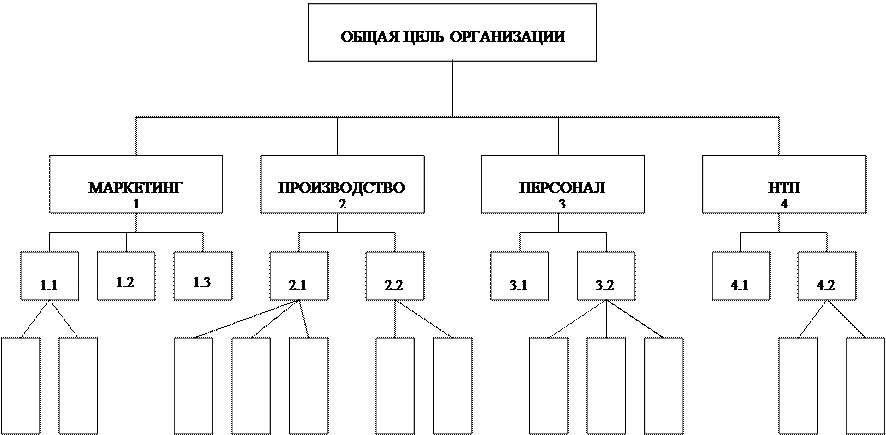 . Весь спектр современных методов менеджмента размещаются между ними. На одном конце спектра находится реактивное управление, которое сводится к реакции на текущие события, при этом цели остаются декларациями, не реализованными на практике, а планы часто меняются или не выполняются вообще, т.е. существуют чисто формально. На другом конце спектра находится методы целевого управления, отличающиеся заблаговременно определяемыми конечными результатами действий. Целевое управление – это профессиональный подход к управлению. Главное назначение целевого управления – достичь результата с наименьшими потерями ресурсов, в первую очередь времени. Целевое управление позволяет персоналу организации достичь собственные цели, увязав цели организации с целями персонала этой организации, тем самым стимулируя персонал к качественной работе.