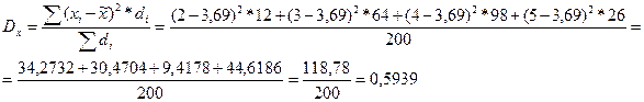3) Рассчитаем дисперсию выборки по баллам успеваемости:
