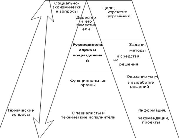 Соотношение централизации и децентрализации определяется уровнями, на которых принимаются управленческие решения. Принятое соотношение определяет тип организационной структуры управления.