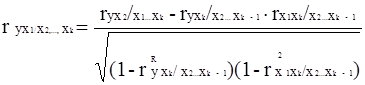 Порядок частного коэффициента корреляции определяется количеством фиксируемых переменных. Выборочный частный коэффициент корреляции любого порядка можно определить по формуле