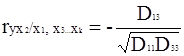 где D – определитель матрицы выборочных коэффициентов корреляции;