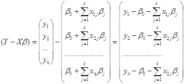 Для оценки неизвестных параметров взята случайная выборка объема n из (k+1)–мерной случайной величины (y, , ,…, ).