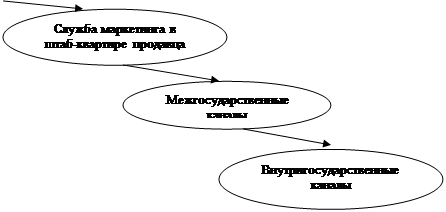 Каналы распределения.Международная компания должна рассмотреть проблему сбыта продукции конечным потребителям с точки зрения всех каналов распределения. На рис 2 показаны три основных связующих звена между продавцом и конечным покупателем.[3]. Штаб-квартира организации продавца контролирует каналы распределения и является частью самого канала.Межгосударственные каналы обеспечивают доставку товаров до границ зарубежных стран.Внутригосударственные каналы, обеспечивают доставку товаров из пунктов пересечения границы иностранного государства до конечных потребителей.