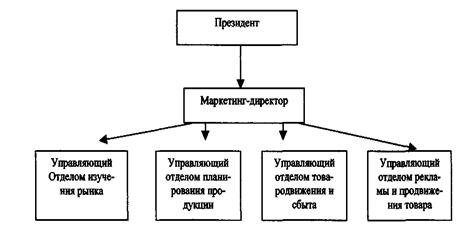 1. При функциональной организации маркетинговых подразделений каждый отдел разрабатывает одну или ряд определенных функций маркетинговой деятельности (рис.3)