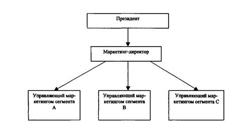 4. Организационная структура по группам потребителей представляет собой своего рода маркетинговые управленческие отделения по рыночным сегментам. (рис 5).