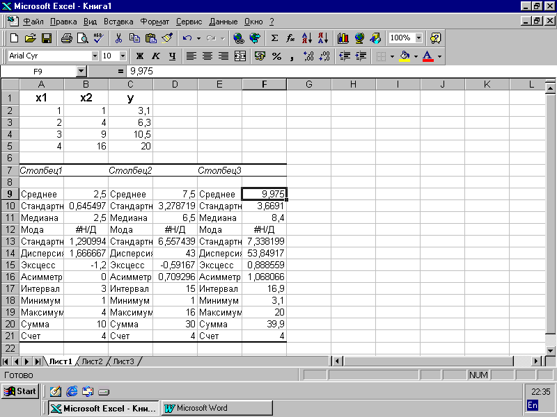 | | Множественный R | 0,997 |