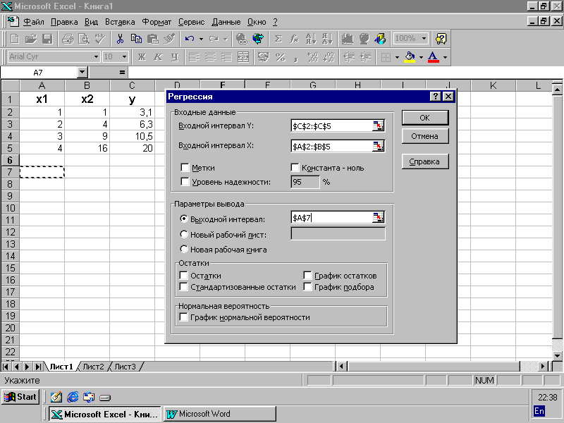 Основные правила использования Exсel для построения регрессионных моделей