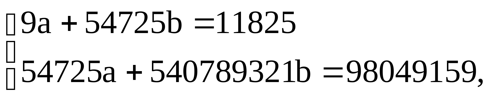 10a + 442b1 + 246b2 = 238; 442a + 20094b1 + 10670b2 = 10895; 246a + 10670b1 + 6188b2 = 5728;