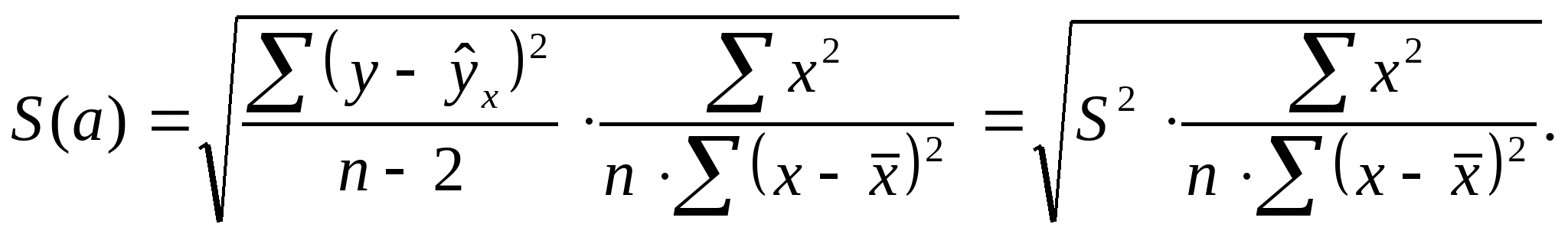 О качестве моделей регрессии можно судить по значениям коэффициента корреляции (индекса корреляции) и коэффициента детерминации для однофакторных моделей и по значениям коэффициента множественной корреляции и совокупного коэффициента детерминации для моделей множественной регрессии. В качестве меры разброса зависимой переменной у обычно используется ее дисперсия. Мера разброса остатков (остаточная вариация) может быть измерена как дисперсия отклонений вокруг линии регрессии:  = D( ) Для оценки точности регрессионных моделей применяют несмещенную оценку дисперсии остаточной компоненты, которая представляет собой отношение суммы квадратов уровней остаточной компоненты к величине (n-m-1), где m – количество факторов, включенных в модель. Квадратный корень из этой величины называется стандартной ошибкой оценки: т.е.,