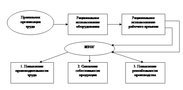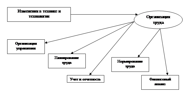Между элементами организации труда существует тесная взаимосвязь, которую можно представить на схеме (см. рис. 2).