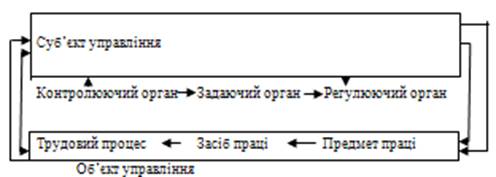 · регулюючий орган – підтримка параметрів праці в заданих межах і умовах.