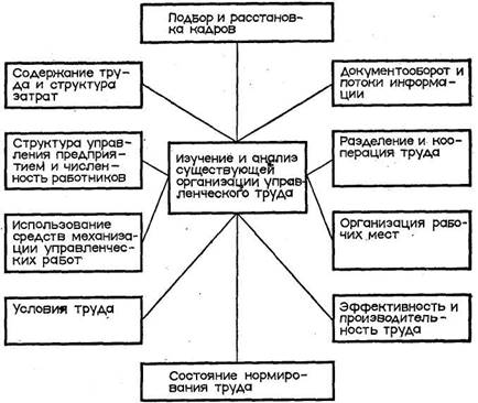 1) анализ действующей организации управленческого труда;