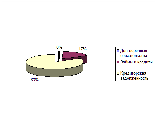 Удельный вес кредиторской задолженности предприятия в 2006 г. увеличился до 83% по сравнению с 2005 г., доля займов и кредитов сократилась до 17%. Долгосрочные обязательства по-прежнему составляют небольшой процент.