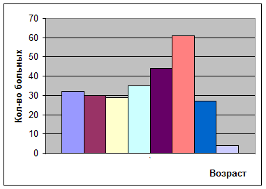 Такая обращаемость, вероятно связана с наибольшей осложненностью и тяжестью заболевания у людей среднего и преклонного возраста.