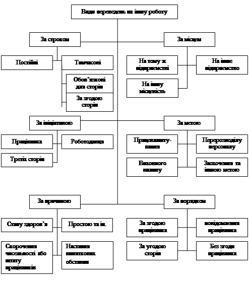 По-друге, впровадження в Україні ринкових механізмів призвели до змін в організації виробництва і праці на багатьох підприємствах. У зв’язку з цим виникли проблеми перерозподілу кадрів між державними і недержавними підприємствами, а також між різними галузями економіки та окремими підприємствами. В таких умовах переведення на іншу роботу є раціональною та ефективною формою перерозподілу трудового потенціалу.