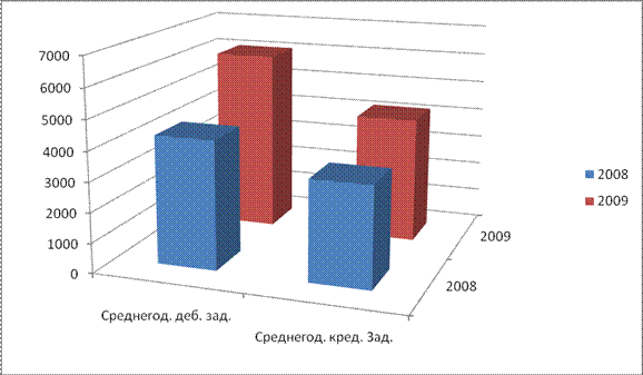 Сравнение дебиторской и кредиторской задолженности за 2008-2009 года.