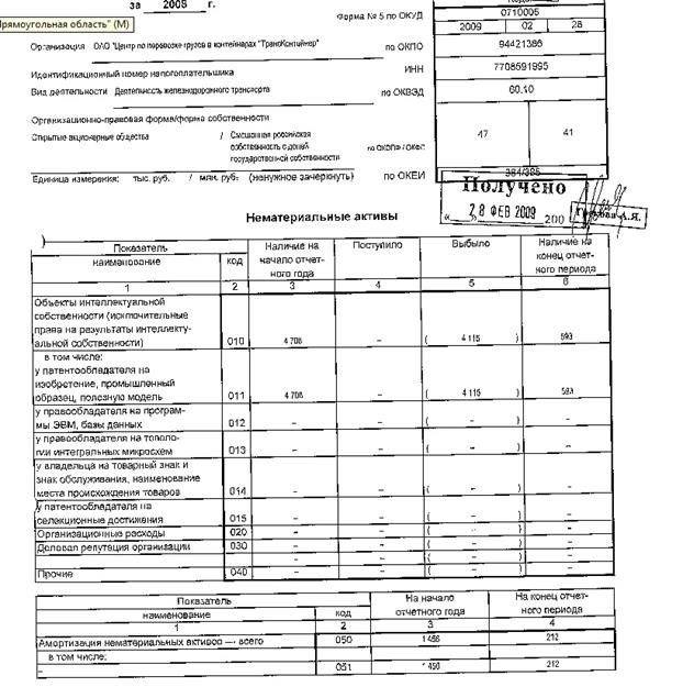 Приложение к бухгалтерскому балансу (Форма №5) 2009 год