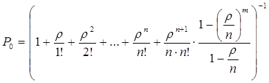 · Ймовірність того, що система обслуговуэn заявок, та m заявок – у черзі):