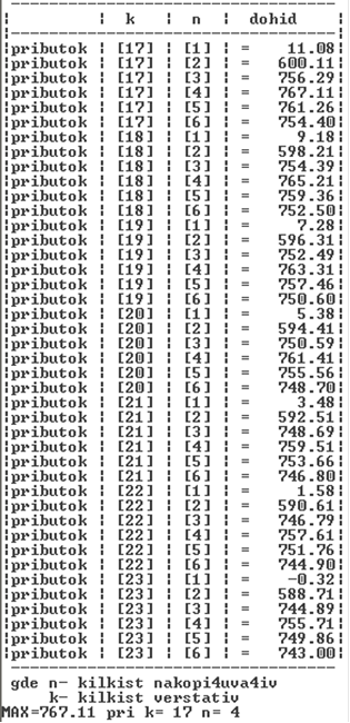 Отже найбільший прибуток отримаємо при сімнадцяти верстатах та чотирьох накопичувачів.