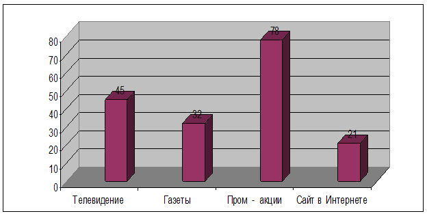 При выборе рекламы следует остановиться на пром - акциях и рекламе на телевидении, так как они являются более эффективными видами рекламы.