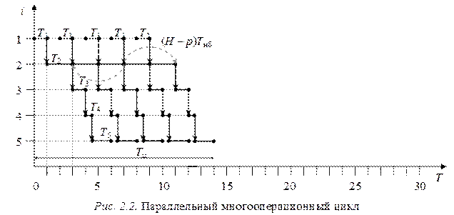 Структура параллельного цикла представляет собой упорядоченную совокупность операционных циклов обработки передаточной партий, в максимальной степени перекрывающихся во времени на каждой паре смежных операций.
