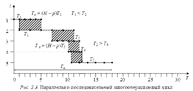 В структуре параллельно-последовательного цикла существует два различных варианта сочетания операционных циклов на смежных операциях (рис. 2.3):