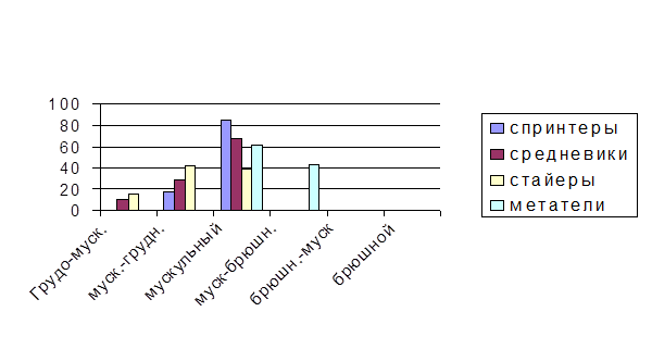 Рис 1 . Особенности структуры моторики школьников 14 лет разных типов телосложения