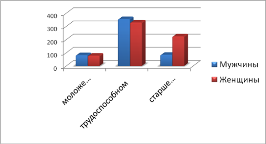 1. Рассмотрим сначала распределение численности населения по полу и основным возрастным группам(на начало года). Тысяч человек.