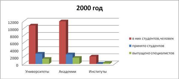 Количество университетов в Рязани значительно увеличилось по сравнению с 2000 годом. И соответственно количество студентов, принятых на обучение в них значительно выше, чем у академий и институтов.