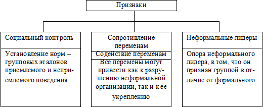 Неформальные организации могут быть похожими и непохожими на формальные организации. Поэтому можно выделить ряд признаков неформальных организаций (рис. 5).