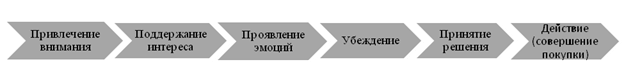 Избирательный характер внимания предотвращает перегрузки психики от потока информации. Механизм психологического воздействия рекламы на ее потребителя можно проиллюстрировать следующей схемой: