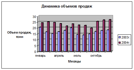Табл. 1.1. Объемы продаж растворимого кофе Nescafé Classic за 2003-2004 гг., тонн