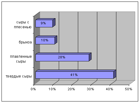 Сейчас на российском рынке представлено огромное количество различных видов сыров, но наибольшей популярностью у россиян по-прежнему пользуются твердые и плавленые виды сыров, которые известны еще с советских време. Среди твердых сыров наибольшей популярностью пользуются такие отечественные марки как «Российский», «Голландский», «Костромской» и «Пошехонский» и импортные марки «Эдам», «Гауда» и «Мастдам». Среди плавленых можно назвать такие известные марки как «Viola» «Hochland» и «President». Производители плавленых сыров стремятся привлекать потребителей путем повышения разнообразия ассортимент за счет различных добавок.