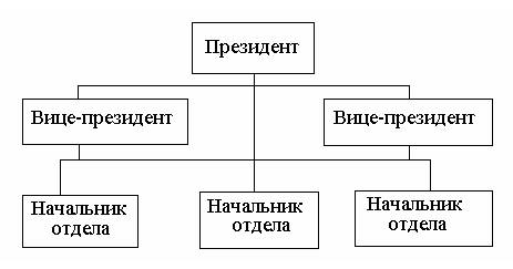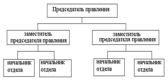 Линейная структура управления (рис. 2) основывается на принципе единоначалия. Каждый элемент структуры может получать управленческие распоряжения только от одного - вышестоящего по отношению к нему органа и соответственно может отдавать распоряжения только определенным нижестоящим по отношению к нему подразделениям.