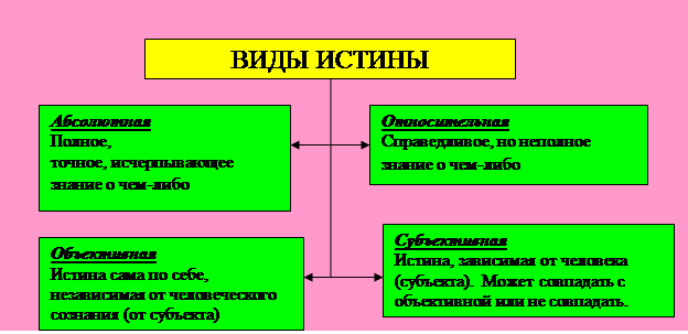 В процессе познания необходимо учитывать момент субъективности истины, так как истинное знание всегда является знанием определенного субъекта – индивида, социальной группы, всего человечества. Истина как процесс является объективной по содержанию, но субъективной по своей форме. Истину нельзя понимать как готовое знание, неизменное и данное раз и навсегда. Истина является бесконечным процессом приближения к объекту, который сам находится в развитии. В этом плане любое знание, зафиксированное на том или ином конкретно-историческом уровне развития познания мы имеем дело лишь с относительной истиной.