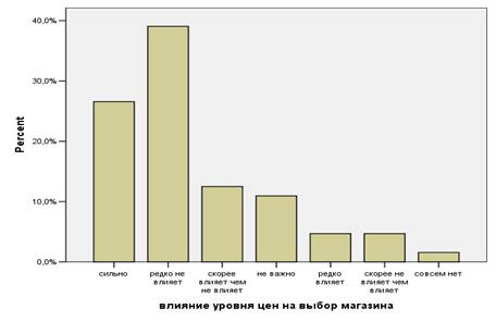 Так же анализ таблица показывает ошибочность выбора параметра «влияние уровня цен на выбор магазина» (параметры связанные с ценной были приняты как «не значимые» еще после анализа с помощью кросс-таблиц), однако из-за того что он занимает 2ое место по важности критериев выбора магазина, было принято решение оставить его как один из параметров, необходимых для описания кластеров.