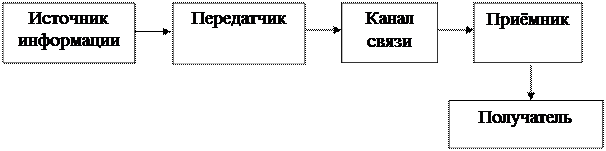Процесс передачи и получения информации представлен ниже на схеме. Это простая схема передачи информации в одном направлении [7].