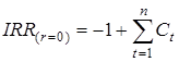 Во-первых, кривая NPV пересекает ось NPV в той точке, в которой значение NPV есть простая сумма всех денежных потоков проекта. И это правильно, так как при такой ситуации ставка дисконта равна нулю. Поэтому все знаменатель в уравнении NPV становятся равны (1+0)t