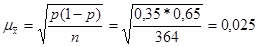 где = 0,35 - генеральная доля (доля абонентов сотовых компаний, обладающих признаком - пользующиеся услугами ОАО «МТС»);