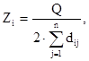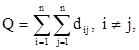 расстояние от элемента i до элемента j,то есть минимальное число связей, соединяющих элементы i и j.