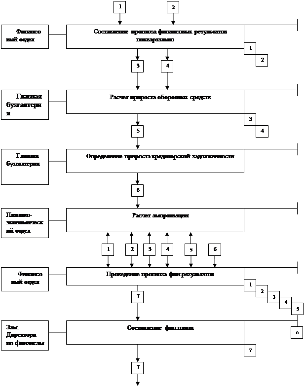 Составлением финансового плана занимается финансовый отдел совместно с главной бухгалтерией, планово-экономическим отделом и зам. директором по финансам. В финансовом отделе составляется и проводится прогноз финансовых результатов. Главная бухгалтерия занимается расчетом прироста оборотных средств, кредиторской задолженности. Планово-экономический отдел занимается расчетом амортизации. Составление и утверждение финансового плана возлагается на зам. директора по финансам.