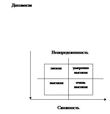 В данном разделе нам нужно определить на сколько наша ситуация сложная, неопределенная и динамичная. Сложность ситуации определяется количеством и разнообразием факторов, влияющих на ситуацию. Динамизм определяется скоростью, с которой изменяются факторы, влияющие на ситуацию. Неопределенность обуславливается наличием или отсутствием информации о ситуационных факторах.