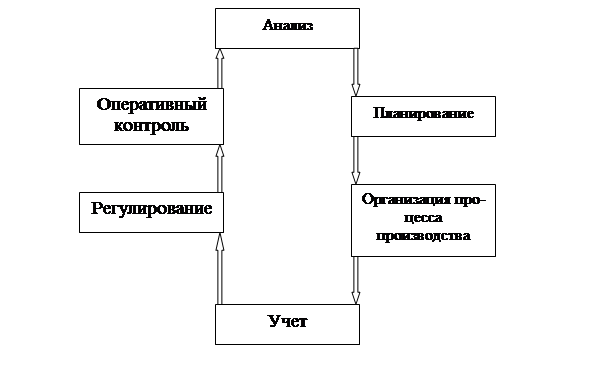 Содержание управленческого анализа хозяйственной деятельности вытекает из его роли и функций, которые он выполняет в системе управления предприятием, где занимает одно из центральных мест. Система управления состоит из следующих взаимосвязанных функций: планирования, учета и контроля, анализа хозяйственной деятельности и принятия управленческих решений.