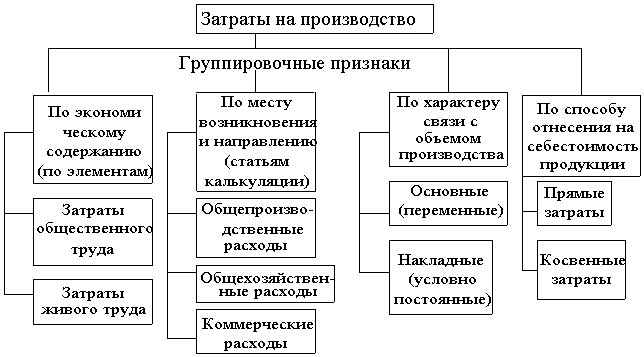 Кроме группировок затрат на производство по экономическому содержанию (по элементам затрат) и по месту возникновения и направлению (по статьям калькуляции) можно построить группировки затрат и по другим признакам.