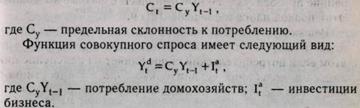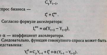 Таким образом, эффект мультипликатора вызывает действие акселератора. В формализованном виде спрос домохозяйств можно представить: