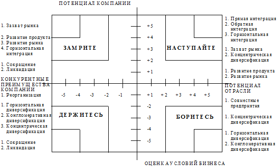 Каждый стратегический квадрант соответствует одной из четырех возможных стратегических линий компании: