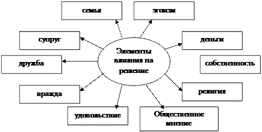 Решение может быть направлено на достижение разовых результатов, на создание постоянно идущих процессов, поддержание идущих процессов, на прекращение какой-либо деятельности. На разработку и реализацию решений оказывают влияние множество факторов, в том числе личностные качества человека, отношения в его семье, религия и другие (рис. 1.1) [28].
