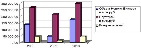 По итогам 9 месяцев 2010 объем нового бизнеса и количество заключенных контрактов увеличилось. Компании активизировались и подписывают новые соглашения о сотрудничестве на более выгодных условиях. Можно отметить соглашение между двумя крупными компаниями "ГАЗ" и "Сбербанк Лизинг". "Сбербанк Лизинг" занимает лидирующие позиции в сегменте автотранспорта, оборудования, железнодорожного транспорта и недвижимости, а компания "ГАЗ" является крупнейшим автомобилестроительным холдингом России.