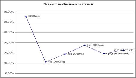 Увеличение одобренных платежей в 2010 году по сравнению с 2009 годом на 3,68% обусловлено тенденциями восстановления рынка лизинговых услуг.