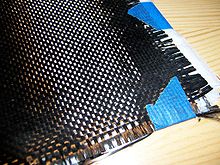Углеродное волокно — материал, состоящий из тонких нитей диаметром от 5 до 15 микрон, образованных преимущественно атомами углерода. Атомы углерода объединены в микроскопические кристаллы, выровненные параллельно друг другу. Выравнивание кристаллов придает волокну большую прочность на растяжение. Углеродные волокна характеризуются высокой силой натяжения, низким удельным весом, низким коэффициентом температурного расширения и химической инертностью. История В первые получение и применение углеродных волокон (УВ) (точнее, нитей) было предложено и запатентовано известным американским изобретателем — Томасом Эдисоном — в 1880 г. в качестве нитей накаливания в электрических лампах. Эти волокна получались в результате пиролиза хлопкового или вискозного волокна и отличались хрупкостью и высокой пористостью и впоследствии были заменены вольфрамовыми нитями. В течение последующих 20 лет он же предложил получать углеродные и графитированные волокна на основе различных природных волокон. Вторично интерес к углеродным волокнам появился в середине XX в., когда велись поиски материалов, пригодных для использования в качестве компонентов композитов для изготовления ракетных двигателей. УВ по своим качествам оказались одними из наиболее подходящих для такой роли армирующими материалами, поскольку они обладают высокой термостойкостью, хорошими теплоизоляционными свойствами, коррозионной стойкостью к воздействию газовых и жидких сред, высокими удельными прочностью и жесткостью. В 1958 г. в США были получены УВ на основе вискозных волокон. При изготовлении углеродных волокон нового поколения применялась ступенчатая высокотемпературная обработка ГТЦ-волокон (900 °C, 2500 °C), что позволило достичь значений предела прочности при растяжении 330—1030 МПа и модуля упругости 40 ГПа. Несколько позднее (в 1960 г.) была предложена технология производства коротких монокристаллических волокон («усов») графита с прочностью 20 ГПа и модулем упругости 690 ГПа. «Усы» выращивались в электрической дуге при температуре 3600 °C и давлении 0,27 МПа (2,7 атм). Совершенствованию этой технологии уделялось много времени и внимания на протяжении ряда лет, однако в настоящее время она применяется редко ввиду своей высокой стоимости по сравнению с другими методами получения углеродных волокон. Почти в то же время в России и несколько позже, в 1961 г., в Японии были получены УВ на основе полиакрилонитрильных (ПАН) волокон. Характеристики первых углеродных волокон на основе ПАН были невысоки, но постепенно технология совершенствовалась и уже через 10 лет (к 1970 г.) были получены углеродные волокна на основе ПАН-волокон с пределом прочности 2070 МПа и модулем упругости 480 ГПа. Тогда же была показана возможность получения углеродных волокон по этой технологии с еще более высокими механическими характеристиками: модулем упругости до 800 ГПа и пределом прочности более 3 ГПа. УВ на основе нефтяных пеков были получены в 1970 г. также в Японии. Получение У В обычно получают термической обработкой химических или природных органических волокон, при которой в материале волокна остаются главным образом атомы углерода. Температурная обработка состоит из нескольких этапов. Первый из них представляет собой окисление исходного (полиакрилонитрильного, вискозного) волокна на воздухе при темп